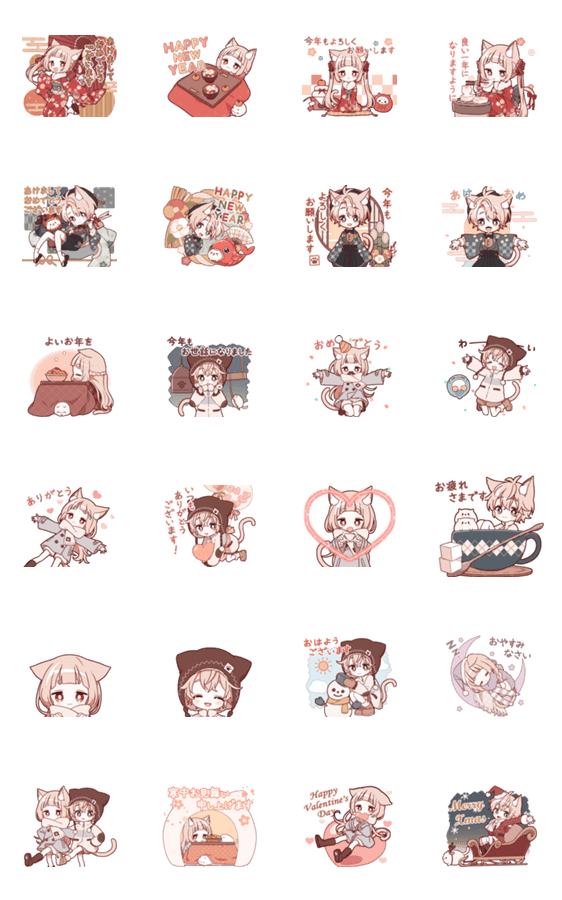 お正月・冬】飛び出す!ゆるねこ女子&男子