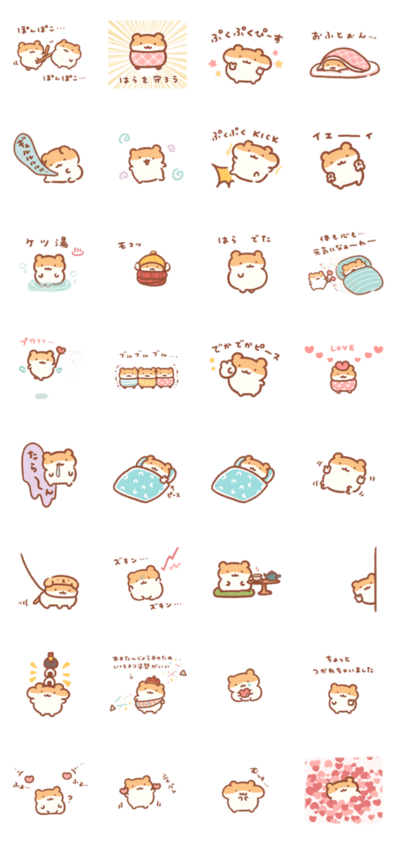 脱力系ハムスターすやはむの愉快ながんばらないスタンプです。ピースとハート多め。
