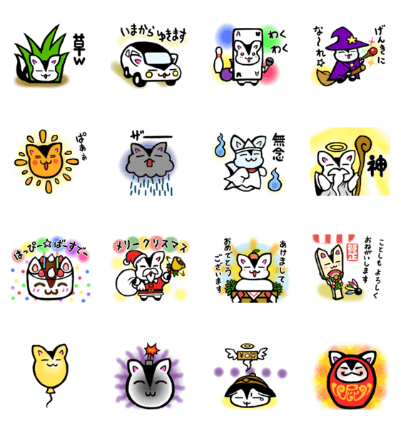 まさスカのなりきり姿が描かれたスタンプ。背景の黄色はやっぱりオナラかもしれない。
