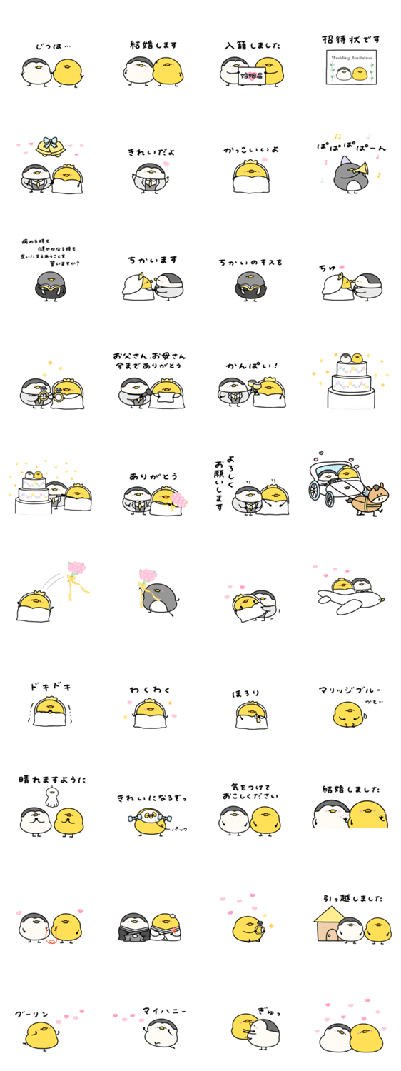 ひよことペンギンの結婚式のスタンプです! 修正しました。