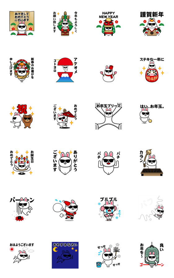 動く!グラサンラビット@お正月/年末年始A -LINEスタンプマニア