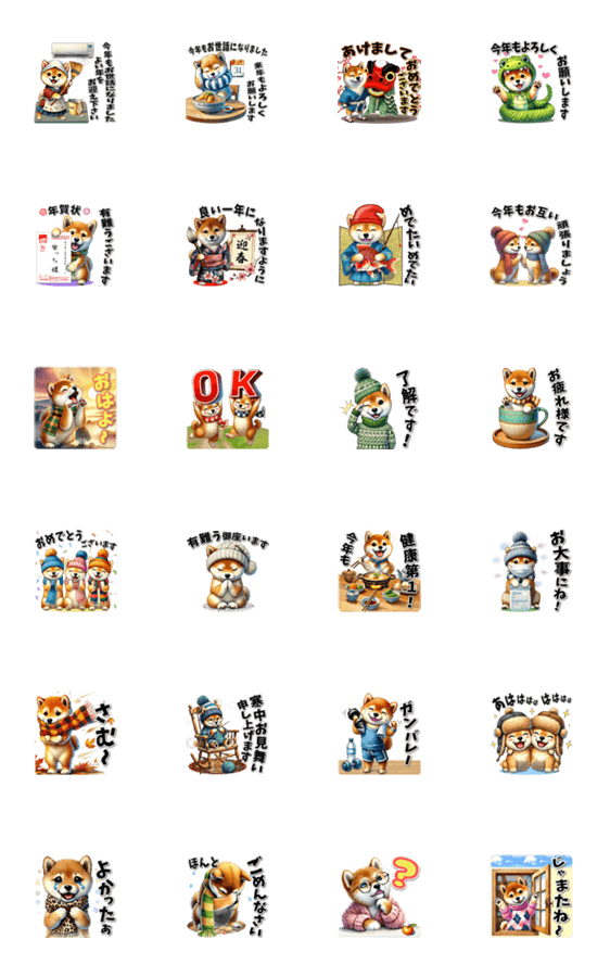 柴犬さんと一緒に年末年始を迎えましょう!愛らしいスタンプで新年のご挨拶や日常会話を華やかに!大切な方へのご挨拶にぜひ!