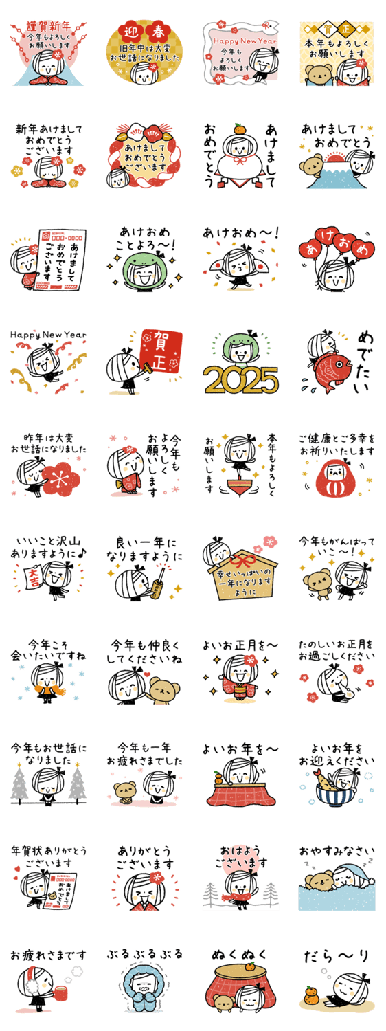 ボブGIRLの年末年始からお正月に使えるスタンプです*。敬語が多めなので相手を選ばずに送りやすいです♪..2025年/巳年/令和7年/あけおめ/新年挨拶/年賀状/大晦日/冬