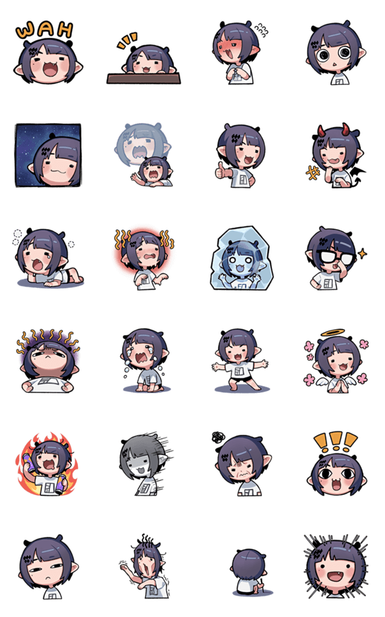 ホロライブ公式スタンプとして、ホロライブEnglish所属「一伊那尓栖」のLINEスタンプが登場! イラスト:一伊那尓栖