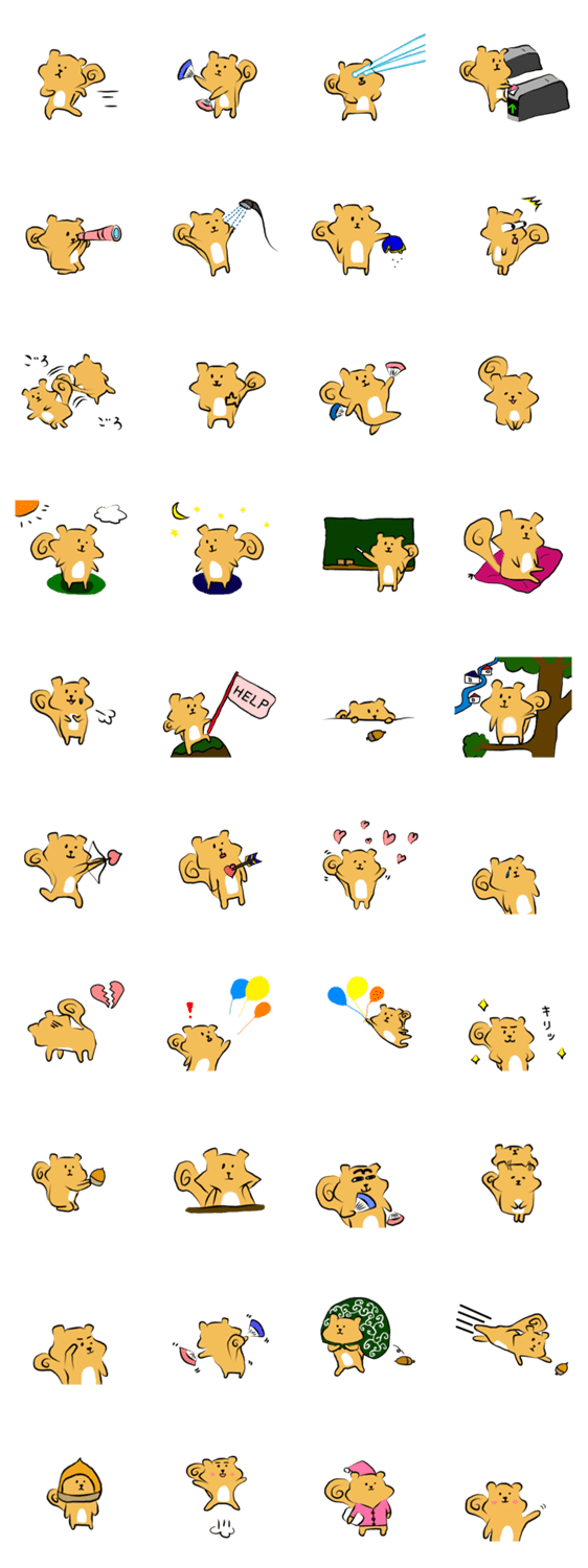 どこか哀愁漂う、りすのスタンプです。使いやすいよう、文字は少なめです。