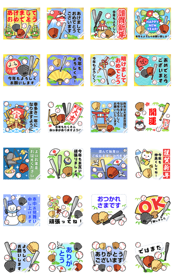 野球が大好きな人の為の年賀スタンプを作りました。新年のご挨拶に使ってください♪ 現在この商品は一部のスマートフォン版LINE 10.3.0以上のトークルームでのみ使用できます。動作環境の最新情報はヘルプをご確認ください。