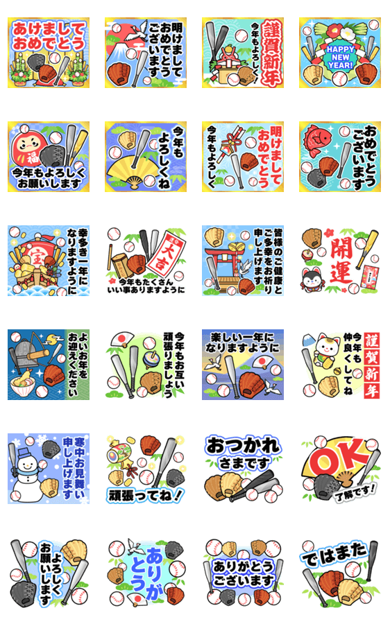 野球が大好きな人の為の年賀スタンプを作りました。新年のご挨拶に使ってください♪