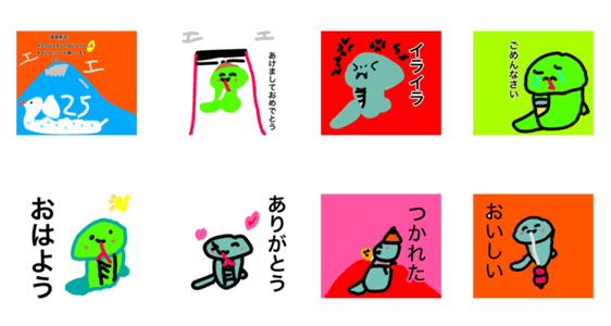 あけおめスタンプへびイラストです