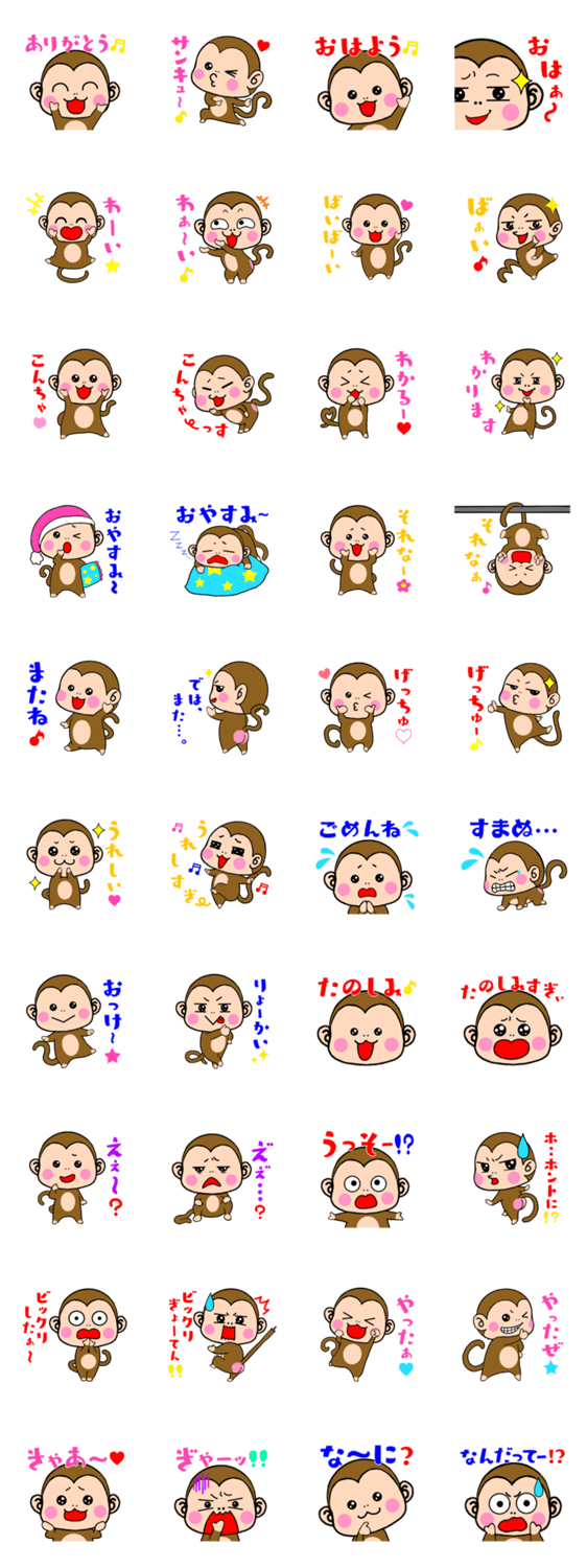 可愛いとおふざけのコンボ!日常使いしやすいおさるちゃんスタンプです。
