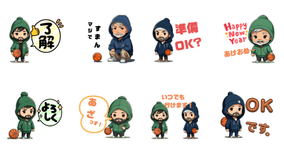 LINEスタンプメーカーでつくったバスケ好きのおじさん用スタンプです。