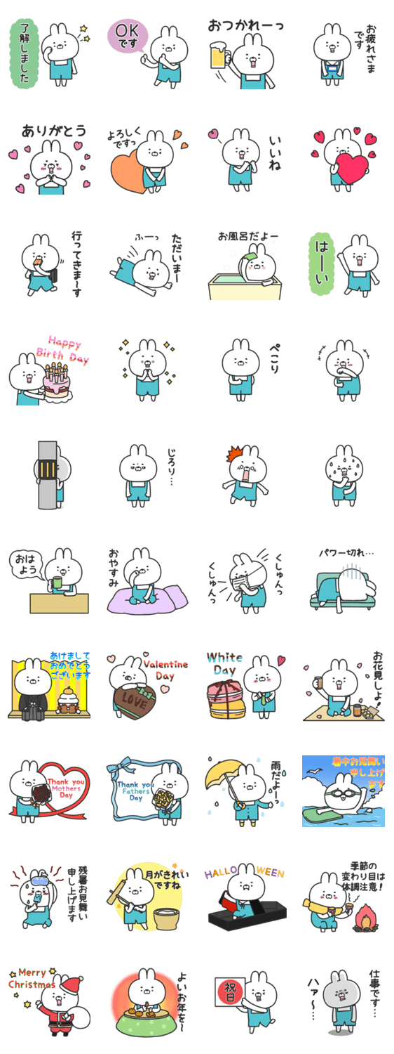 年中行事と普段使いに便利な日常スタンプで毎日使えるよ!うさちゃん(彼女)もあるのでカップルでも♡ うさぎ/お花見/母の日/父の日/暑中見舞い/ハロウィン/お正月など