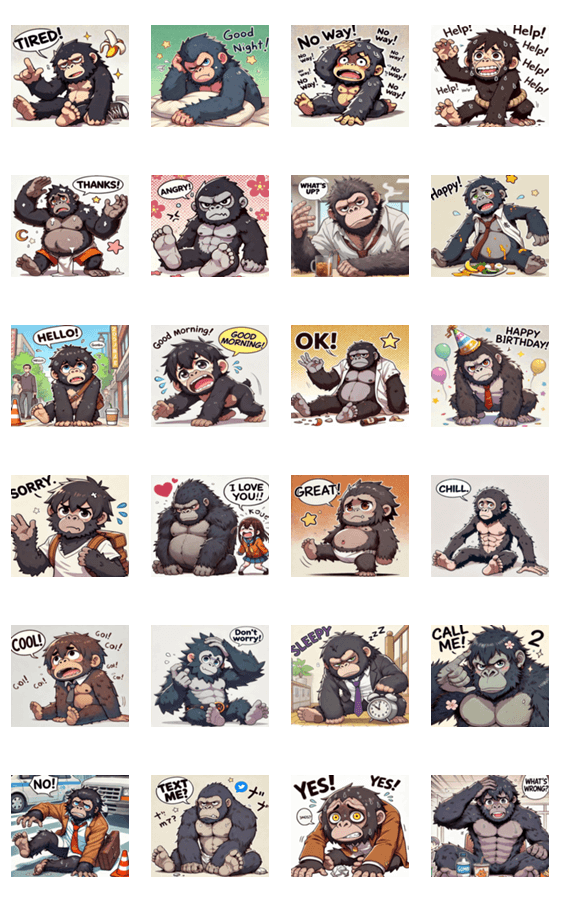 おっちょこちょいで可愛いポンコツゴリラのスタンプセットです。楽しい会話にぴったりです!