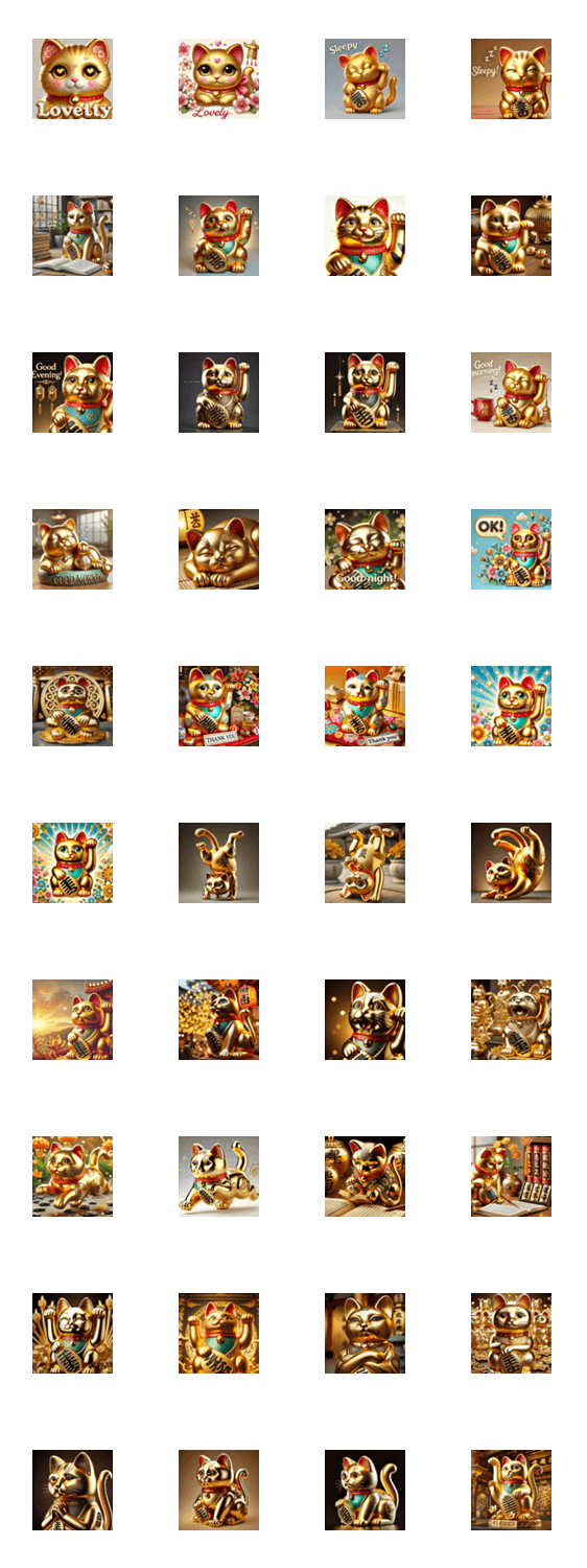 金運を呼ぶ金色の招き猫たち -LINEスタンプマニア