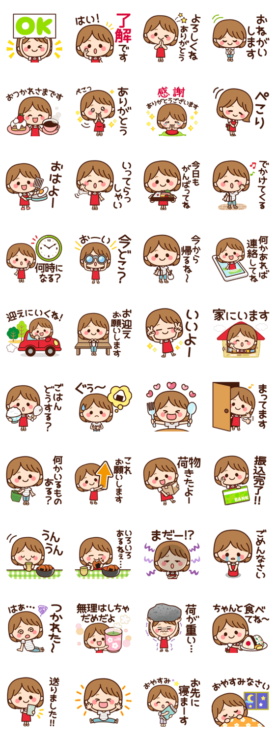 みんなでずっと使える♪家族・友達との日常連絡用に。ゆるっとかわいいボブ頭の女の子、今回はママ・主婦目線♪春夏秋冬いつでもOK♥ママ友・敬語・ありがとう・気づかい♥
