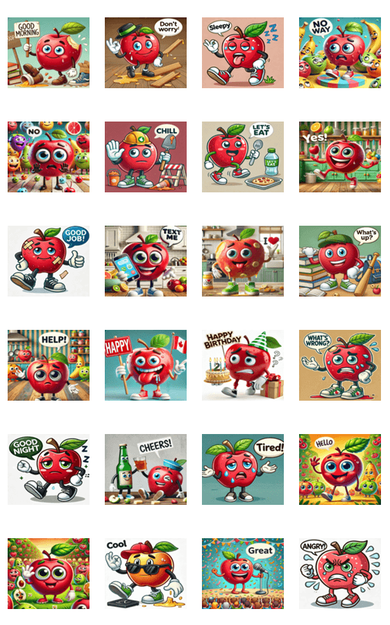 おっちょこちょいで可愛いポンコツリンゴのスタンプセットです。楽しい会話にぴったりです!