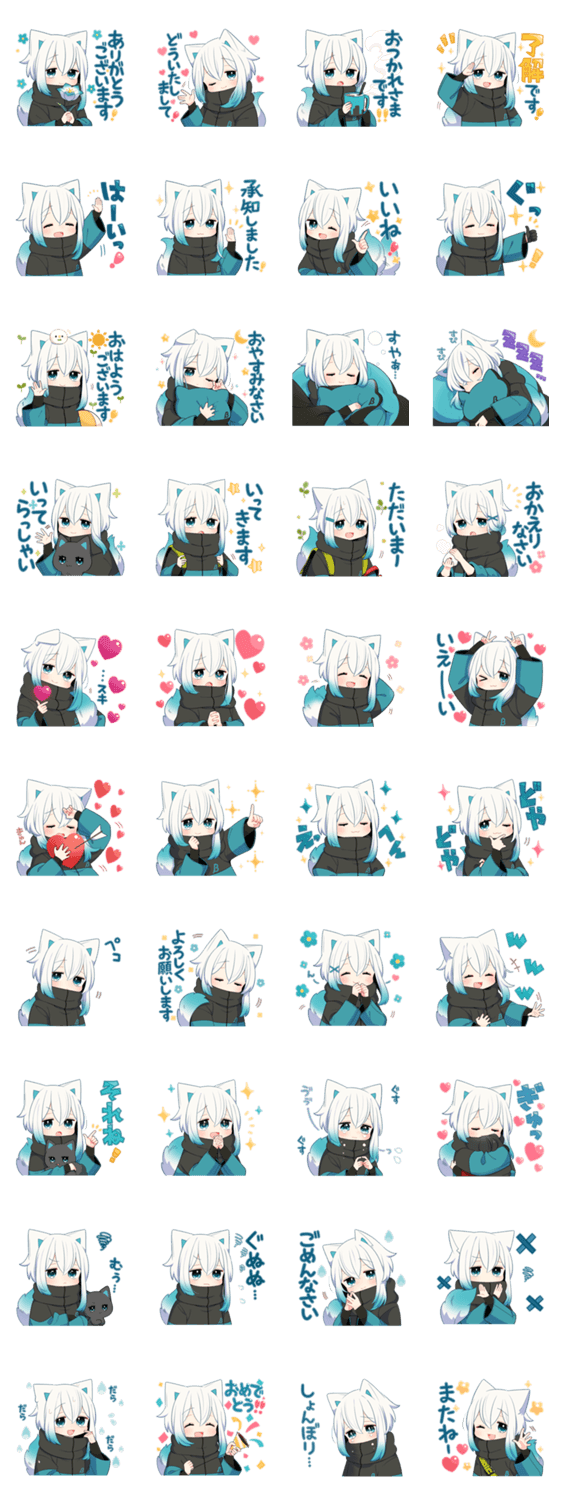 白猫さんのスタンプです。友達や恋人、家族と毎日使えるちょっと丁寧な日常会話、リアクションや挨拶が沢山入っています。