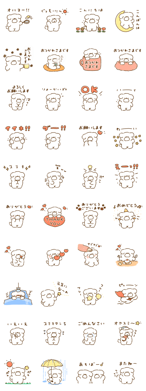 ふわふわとした犬のフラッフィークリーム。 敬語/挨拶/毎日/日常/いぬ/犬/イヌ/癒し/ゆるかわ/北欧/かわいい/ほんわか/動物/便利/ほのぼの/ほっこり/気遣い
