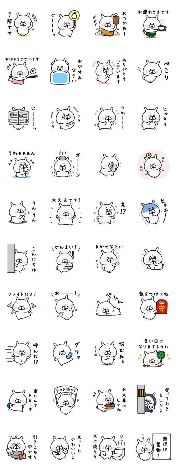 いつもよりちょっぴり小さなゆるうさぎのスタンプ。家族や友だち、彼氏彼女、恋人、ママ友、先輩後輩...毎日のトークに使えます。