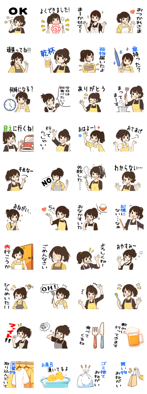 年中ず~と使える家族や友達とのやりとりに便利な日常連絡用スタンプです。主婦/カップル/家族連絡/夫婦連絡/家事連絡/挨拶/お使い/シンプル/気づかい/敬語