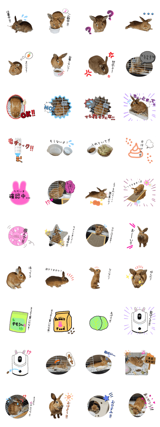 家のぷりんちゃんの実写日常スタンプです。うさぎ好きの方はぜひ使ってみてください!!