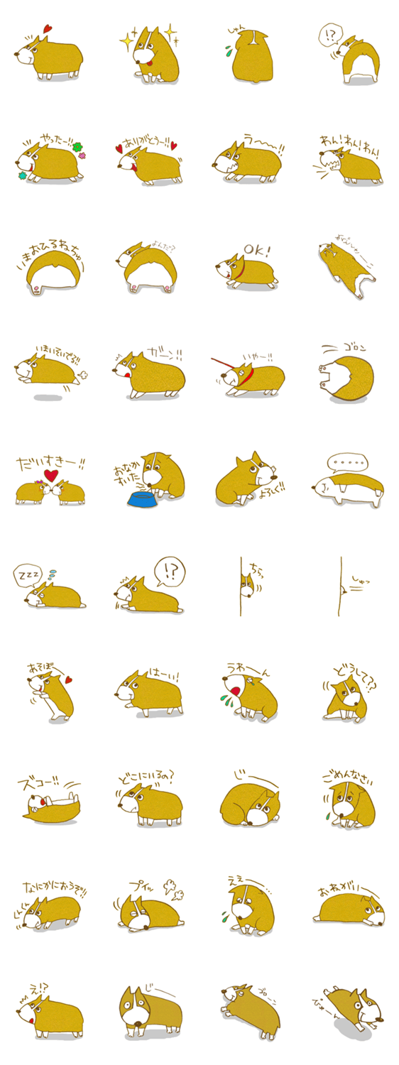 うちのペットの犬のウェルシュコーギーのサンさんをスタンプにしてみました!コーギー好きな人も、そうじゃない人もゆるく楽しく使ってください!