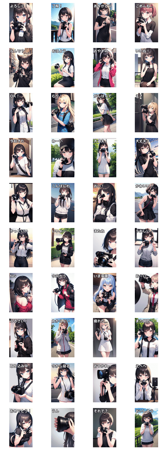 カメラ撮影をする女の子 -LINEスタンプマニア