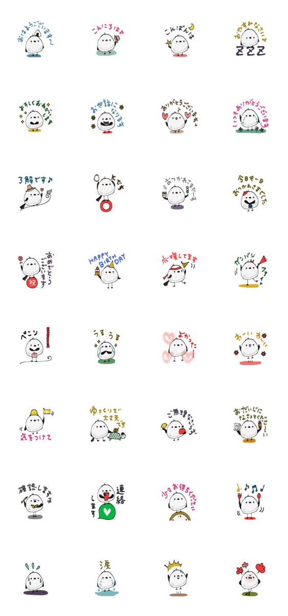大人かわいいシマエナガのシンプルで丁寧で使いやすいセットです♪おはようございます/おやすみなさい/よろしくお願いします/ありがとうございます/了解です/お疲れ様です/