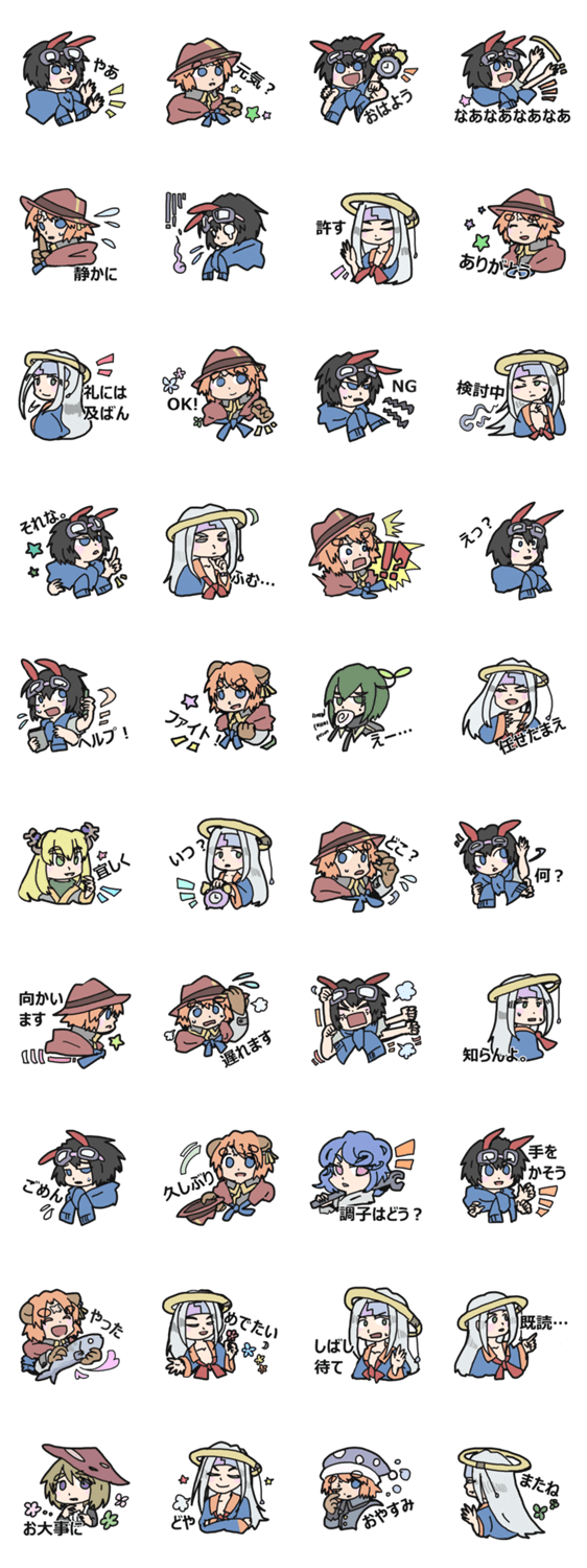 小熊のダイダイ、四つ腕のヨン、蛍光灯のシロ等を詰め合わせたスタンプ。