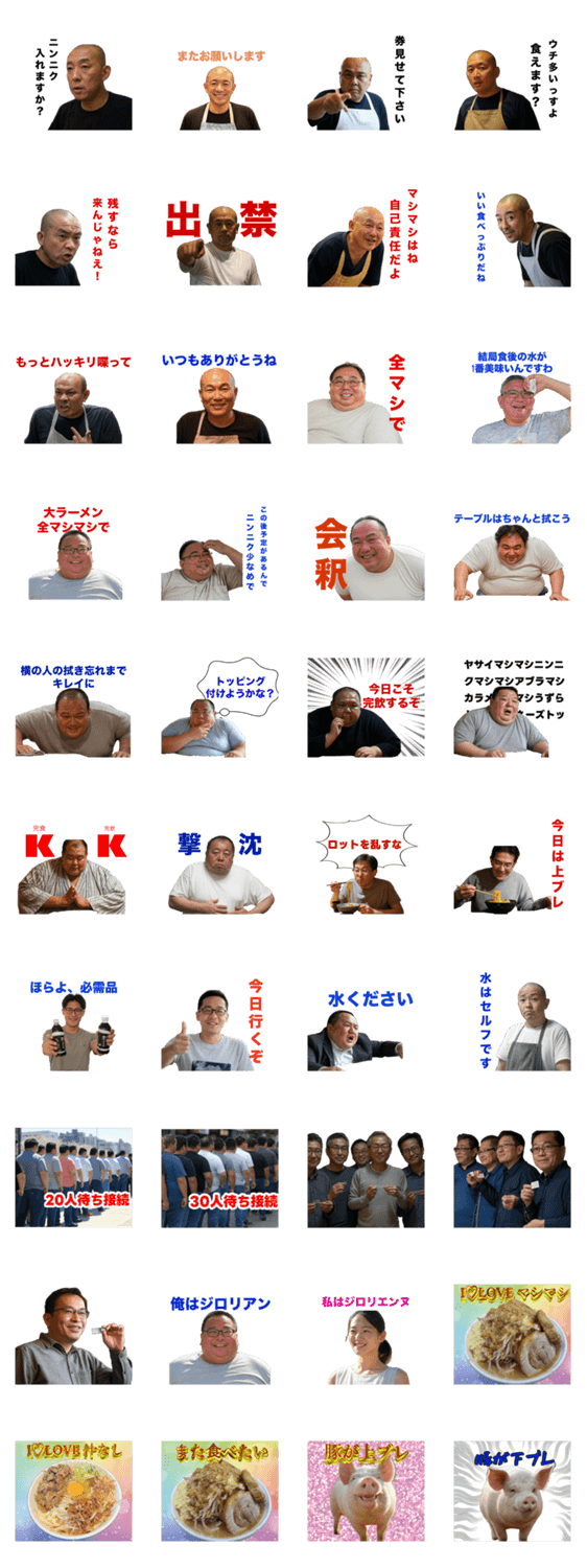 ワクワク楽しい二郎系ラーメンスタンプ修正&ボリュームアップ版※このスタンプに登場する人物は全てAIです。