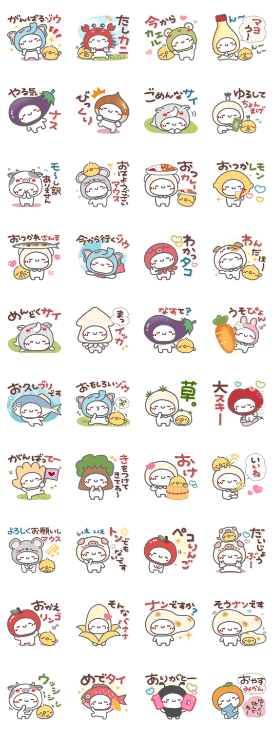 日常で楽しく使えるダジャレスタンプです。挨拶/食べ物/動物