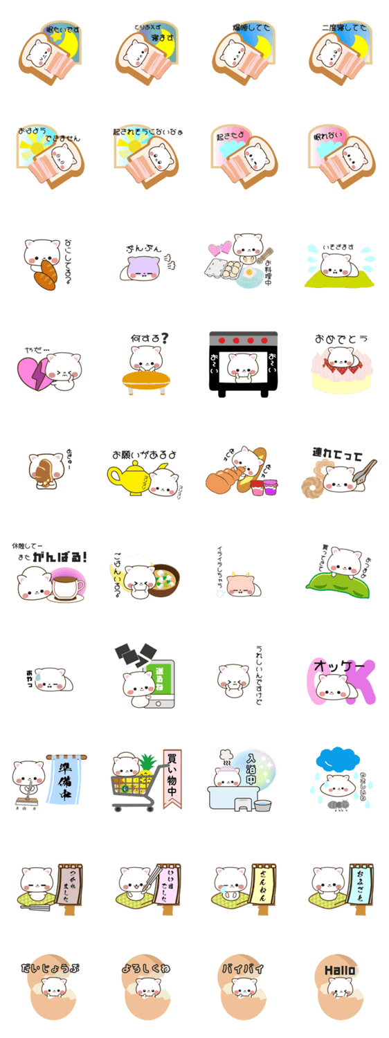 ポップな白猫が可愛い。日常に使いやすいスタンプです。 ずっと使える内容を揃えました。
