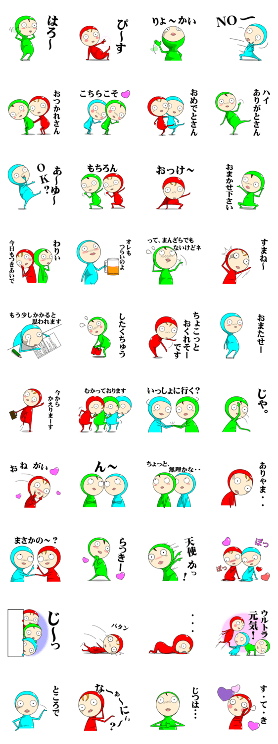 シュールでかわいい兄弟のスタンプです。一見するとヘンタイっぽい兄弟ですが、なんとなく可愛いです。笑いと個性を発揮する目力抜群の兄弟を友達にぶつけよう。