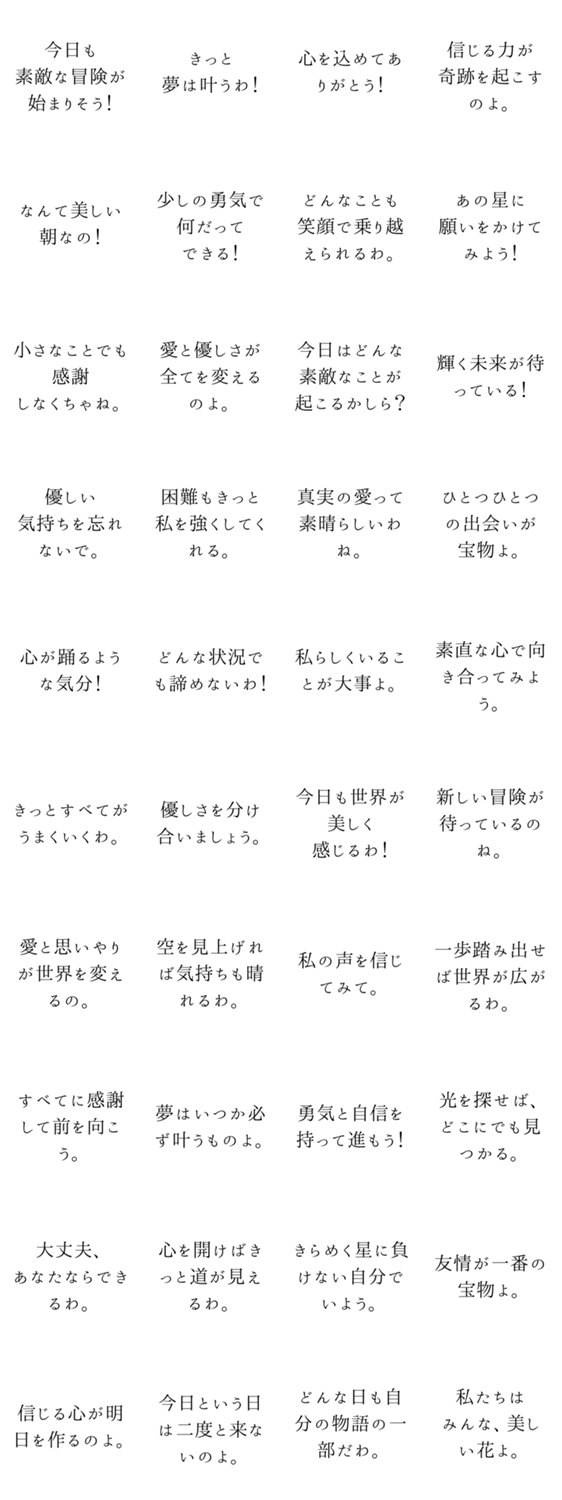 プリンセスのような毎日で明るくポジティブな人生を。心に響く。家族友人友達恋人に。毎日使える日常言葉。お嬢様。