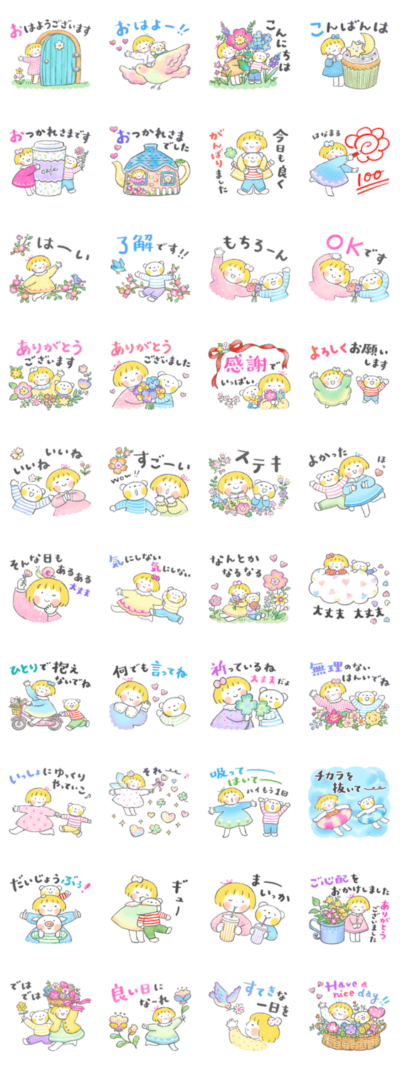 思いやりや励ましの言葉が詰まったスタンプです。毎日使いやすい日常言葉も入っています♪春色のパステルカラーで優しい気持ちを届けてくださいね!お花好きさんも是非♡