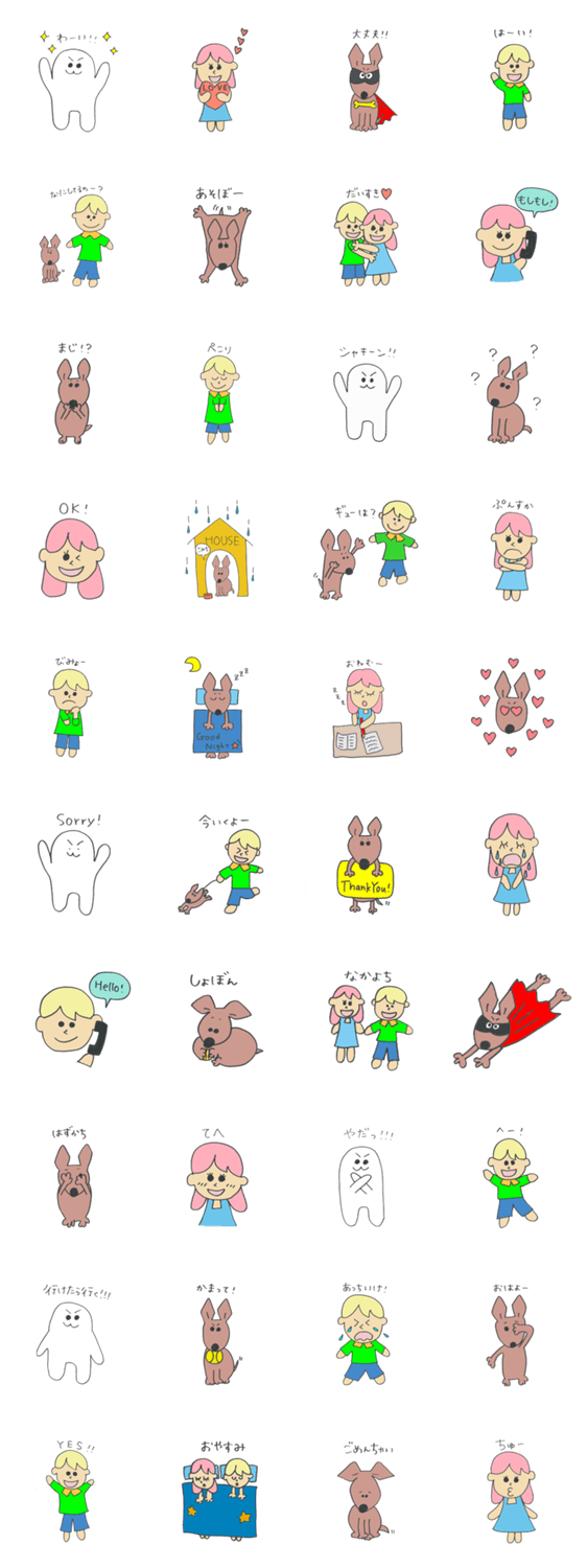 わんこのマッシュと彼と暮らす可愛い仲間たちのスタンプです。