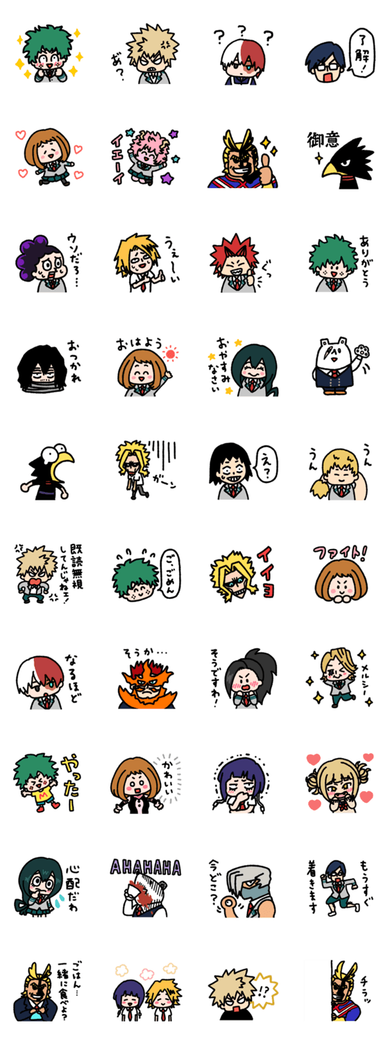 毎日使える僕のヒーローアカデミア(ヒロアカ)のスタンプです。A組多め。 ※LINE Creators Collaboration 僕のヒーローアカデミア参加スタンプです。