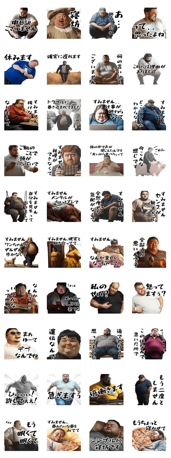 デブが言い訳するスタンプ! /バレるウソ/絶望/面白い/おもしろ/メンヘラ/ぽっちゃり/鬱/ギャグ/うざい/ダイエット/煽り煽る/挨拶謝る/ネタ/寝坊/ウケる/遅刻/欠席/笑える