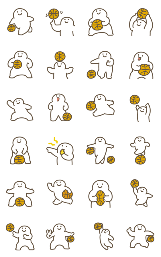 バスケットボールが好きな人のポップアップスタンプです。バスケ/スポーツ/ニコニコ/スマイル/笑顔/楽しい/シュール/手書き/癒し/ゆるい/ゆるかわ/シンプル