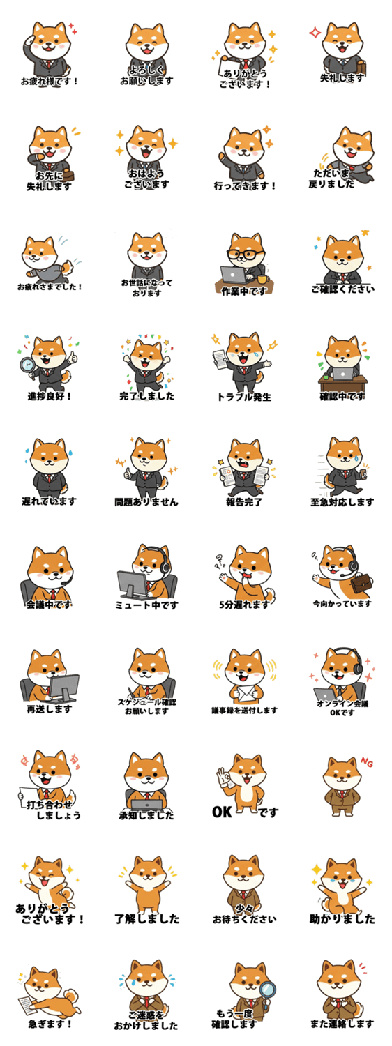 ビジネスシーンで使える柴犬スタンプ!かわいくてプロフェッショナルなShiba Vibesが、挨拶や業務連絡をもっと楽しくします。