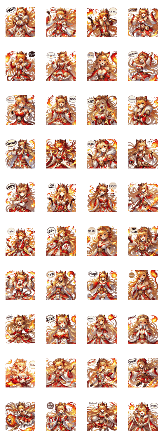 燃える獅子姫がLINEで大活躍!可愛くて熱血なスタンプでトークを盛り上げよう!「GO!GO!」や日常の表情で全力応援