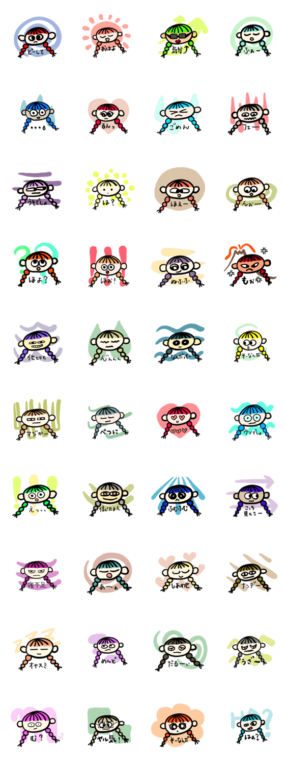 派手髪おさげちゃんの日常使えるリアルなリアクションスタンプ