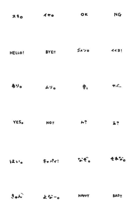 「ひとこと」だけの、シンプルな文字スタンプです。