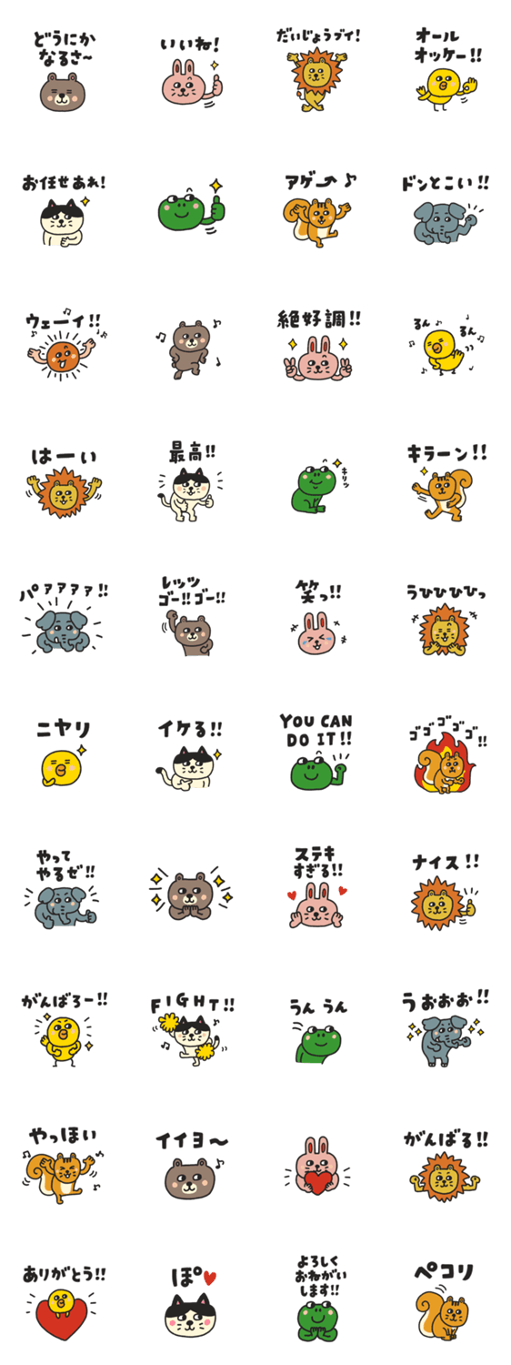 どうぶつたちのスタンプSUNFRIENDSのポジティブSET