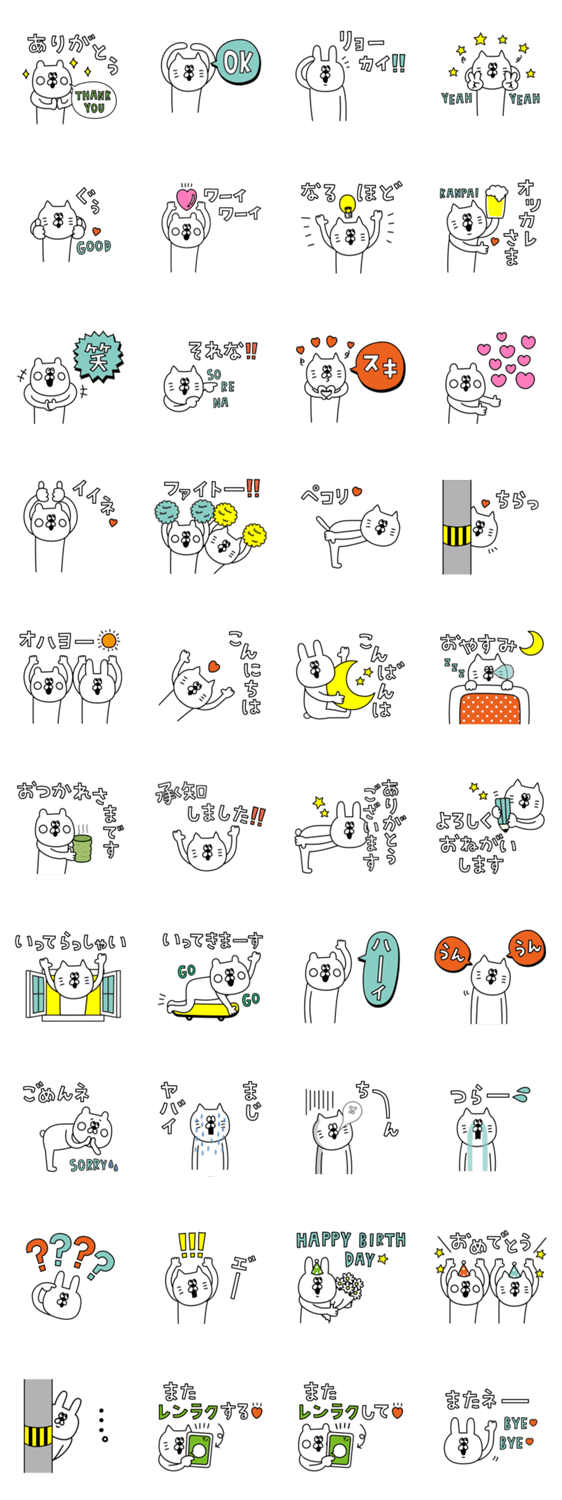 ラフに描いたアニマル達♪ 日常の会話で使えるスタンプ! 猫・ねこ・くま・うさぎ