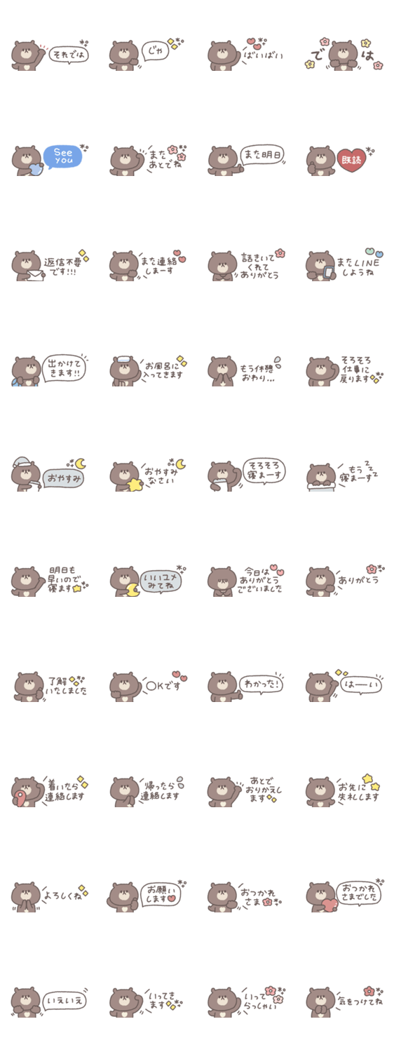一つあると便利なかわいいくまのスタンプです。 くま/大人可愛い/シンプル/あいさつ/吹き出し/くすみカラー/省スペース