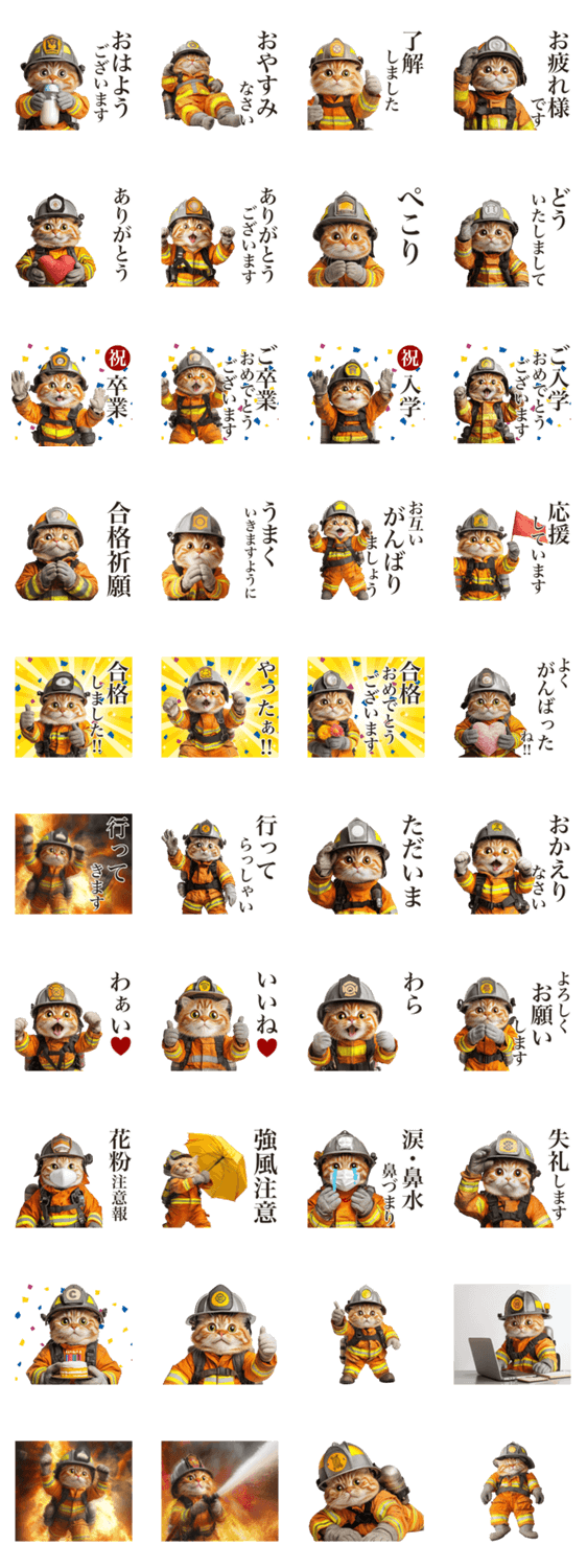 春夏秋冬年中使える/丁寧/敬語/挨拶/あいさつ/日常/毎日/現場/仕事/消防/入学/卒業/合格/お祝い/おめでとう/誕生日/ねこ/猫/ネコ/にゃんこ/動物/面白/実写/画像生成//AI