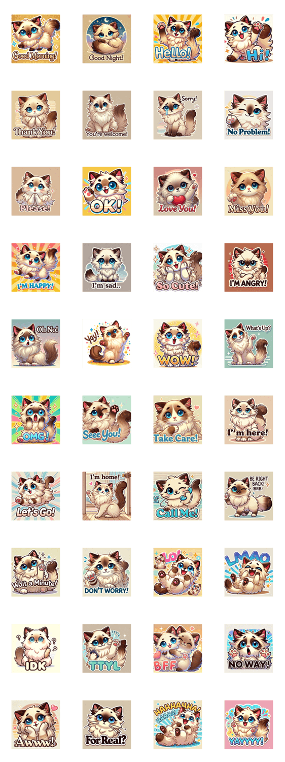 ふわふわで愛らしいバリニーズ猫が、あなたのトークをもっと楽しく彩ります!猫好きさん必見のLINEスタンプ、ぜひ使ってみてね!