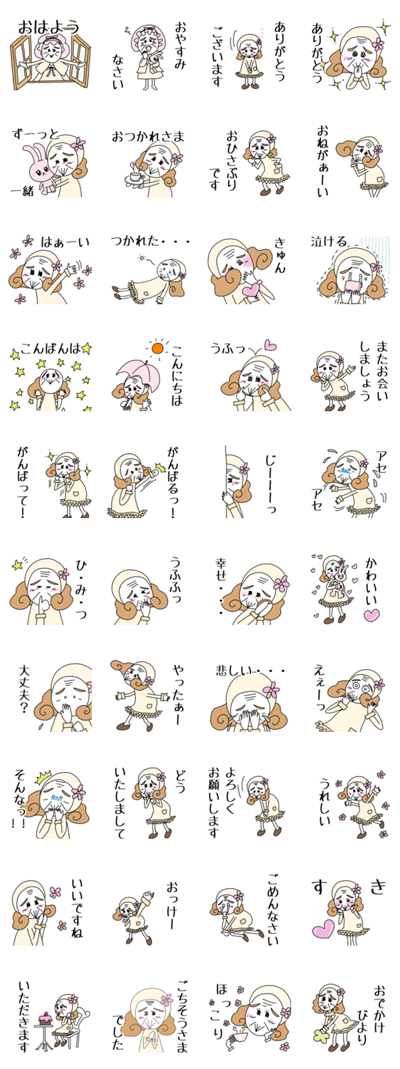 乙女チックおばあちゃんの日常の挨拶 -LINEスタンプマニア