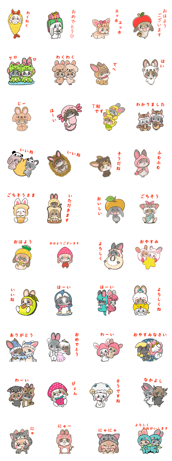 いろいろな着ぐるみを着たうさぎちゃんスタンプです