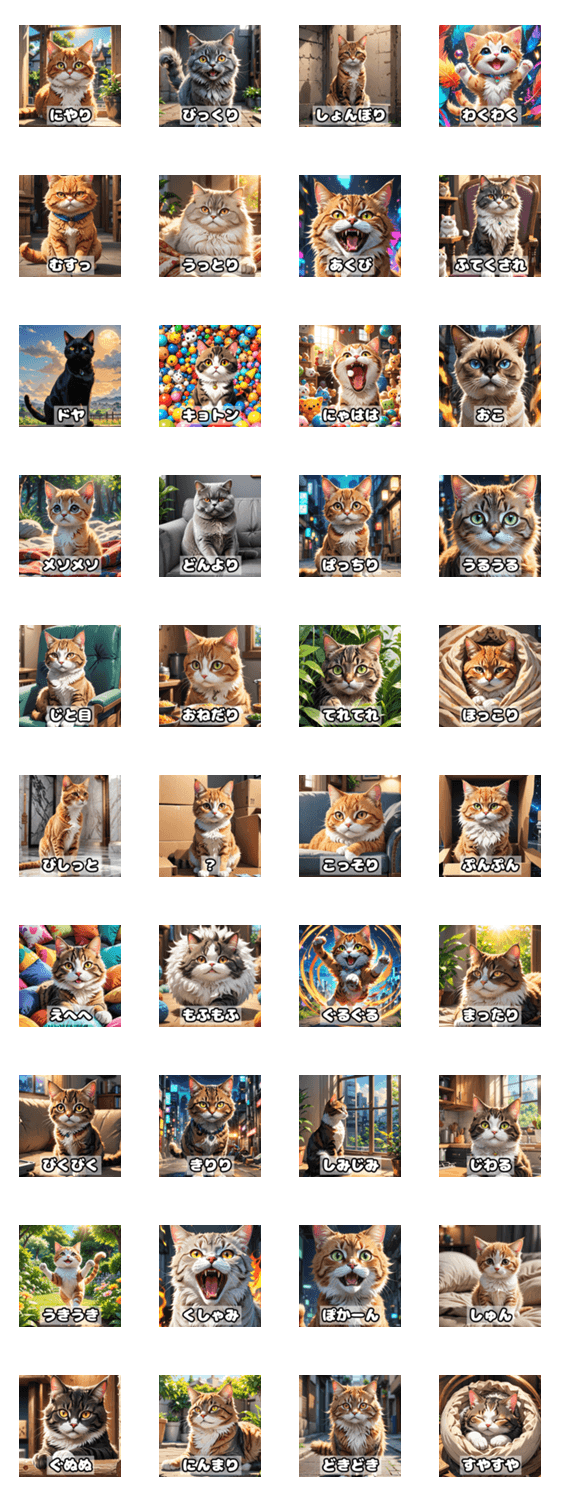 ふにゃふにゃかわいいネコたちが、あなたの気持ちをお届け!毎日の会話をにゃんこで♪